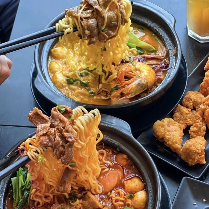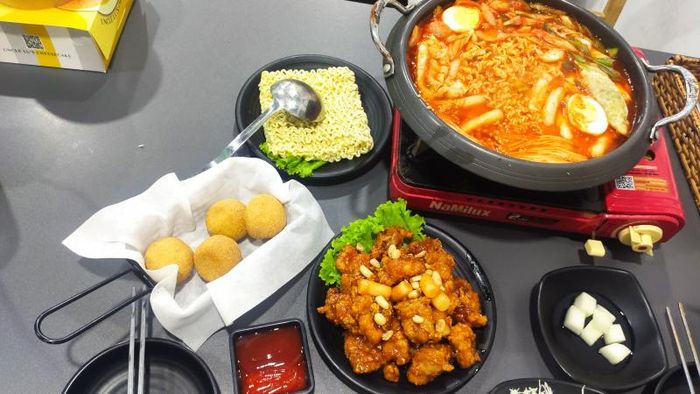 Mi Cay Asan offers two main spicy noodle options: ramen with fish cake and rabokki with fish cake, both of which are popular among customers for their satisfying, flavorful fish cake skewers and spicy broth. The broth is seasoned to suit local tastes and comes loaded with fresh seafood such as shrimp, squid, beef, mushrooms, and cabbage. Additional toppings like fish, squid, and beef are also available upon request. The prices are reasonable, making it an ideal choice for students. From the moment you walk in, the friendly staff will make you feel welcome. The service is fast and attentive, earning praise from many customers.