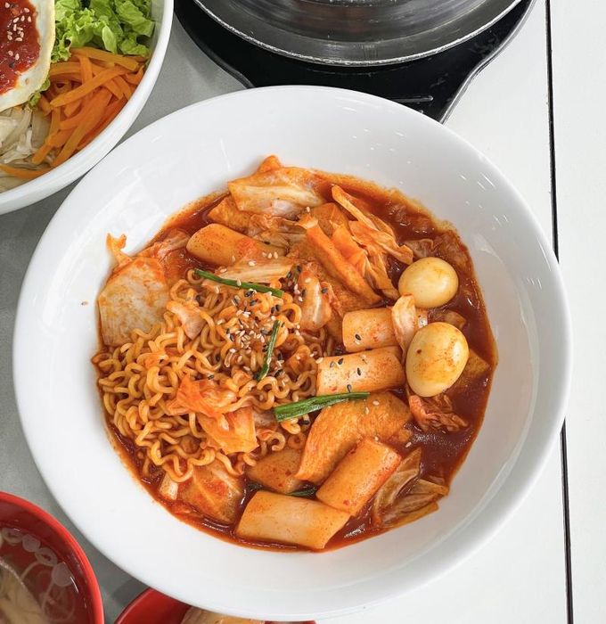 Sasin Spicy Noodles has long been a favorite spot for those who enjoy spicy dishes. The restaurant offers a spacious, clean, and well-ventilated environment with a modern red and black theme. The menu at Sasin is extensive, offering more than just spicy noodles, including dishes like rice cakes and kimbap. It’s the perfect choice for a weekend gathering. Sasin Spicy Noodles are made with chewy Koreno noodles paired with Sasin chili peppers, and served with shrimp, squid, and beef, creating an intense flavor. The restaurant is especially popular for its four signature kimchi noodle dishes: Kimchi Shrimp, Kimchi Beef, Kimchi Fish, and Kimchi Seafood noodles. Sasin Spicy Noodles takes hygiene and food safety seriously, ensuring a healthy meal. The spice level here is higher than most places, so be sure to choose a level you're comfortable with. The restaurant is designed in a Korean-style layout.