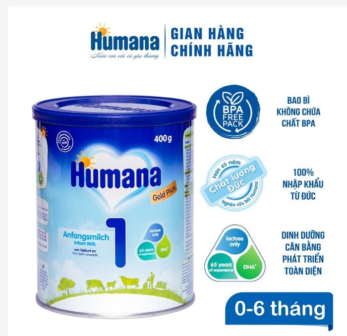 Sản phẩm nổi bật: Sữa Humana Gold số 1 dành cho trẻ từ 0-6 tháng: Là một trong những lựa chọn hàng đầu của các bậc phụ huynh, Humana là một trong những thương hiệu dinh dưỡng trẻ em hàng đầu tại Đức và được ưa chuộng rộng rãi tại thị trường Châu Âu. Sữa Humana số 1 cung cấp đầy đủ các Vitamin và khoáng chất cần thiết cho sự phát triển của trẻ sơ sinh. Đặc biệt, Sữa Humana không chứa chất bảo quản, Gluten, Melamin, phẩm màu, hương nhân tạo. Thích hợp sử dụng để bổ sung cho bé khi mẹ thiếu sữa hoặc thay thế hoàn toàn khi mẹ không thể cho con bú.