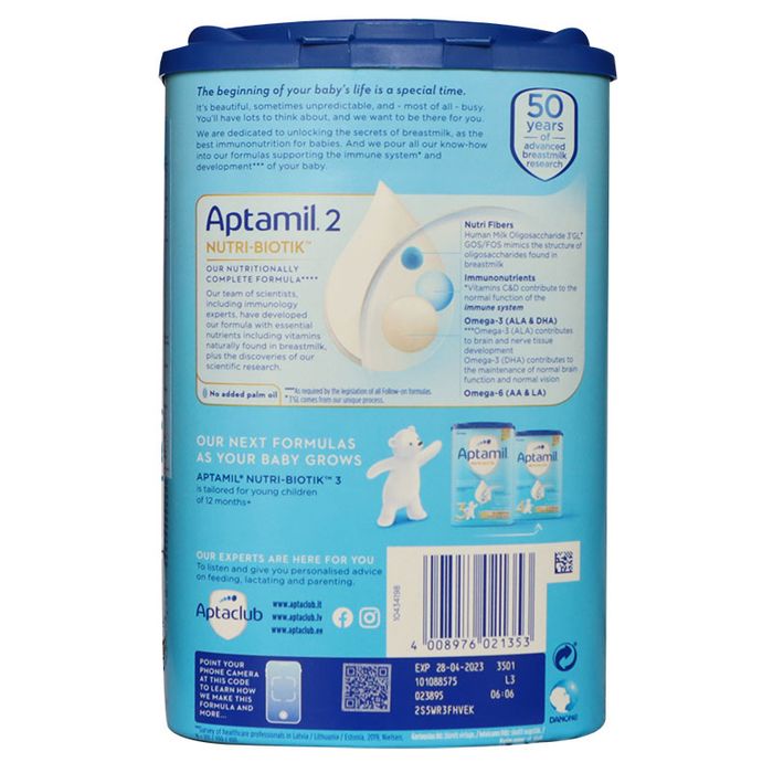 - Sữa Aptamil số 2 có các men tiêu hóa GOS / FOS prebiotics, giúp kích thích, hỗ trợ vi khuẩn đường ruột có lợi, giúp bé có một hệ tiêu hóa khỏe mạnh.