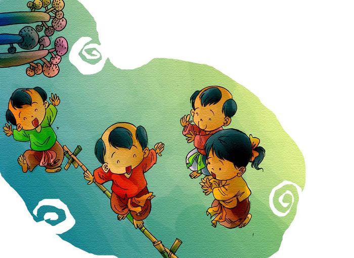 Traditional folk games such as hopscotch, jump rope, and kite flying are deeply cherished by generations of Vietnamese people. These fond memories of childhood are etched in our hearts. To reminisce about those beautiful memories, we invite you to enjoy the most captivating paintings depicting traditional folk games in this article.