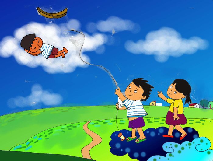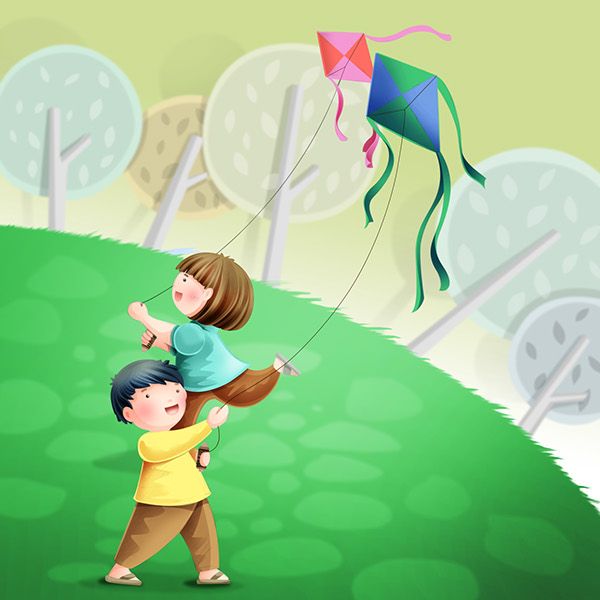 Artwork Illustrating the Traditional Folk Game of Kite Flying