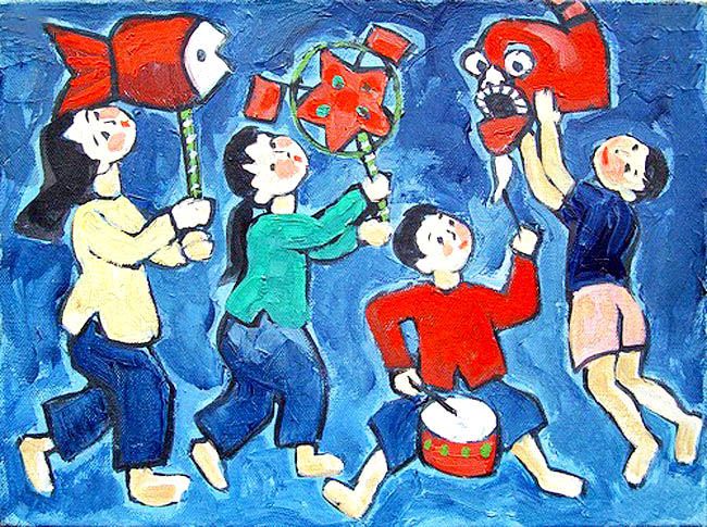 Artwork Depicting the Traditional Folk Game Lantern Parade