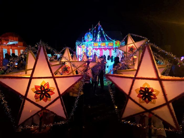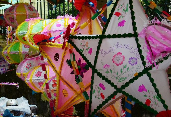Chiếc đèn ông sao năm cánh giống như những vì sao lấp lánh trên bầu trời đêm trăng tám. Bên trong lồng đèn là một vì sao tinh tú của trời đất, còn bên ngoài là một vòng trăng tròn đầy đặn, mở mắt tròn xoe đón chào ngày hội tuyệt vời.