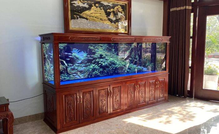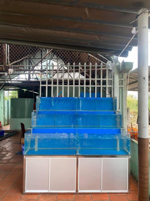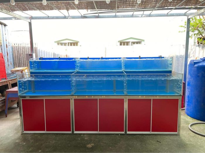 - Bể hải sản làm bằng vật liệu xi măng, mặt trước bằng kính siêu bền.