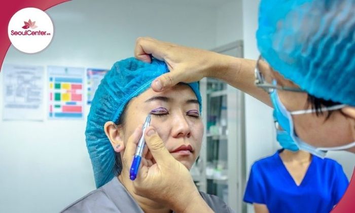- Bác sĩ sẽ vẽ đường ranh giới trên sụn mi mắt