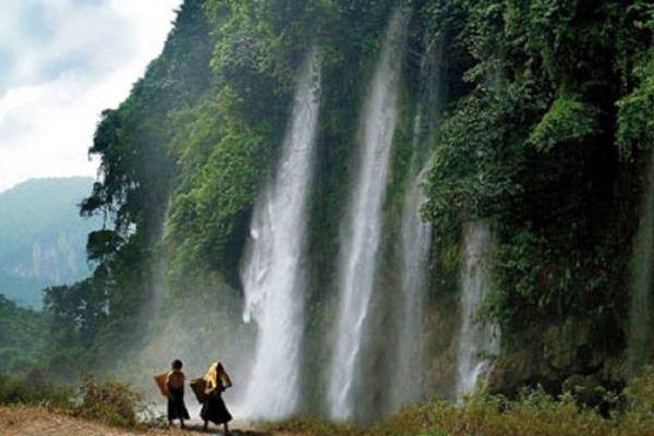Vào mùa mưa, giữa vùng núi non hùng vĩ, những dòng nước trắng xóa ào ào đổ xuống sông Nghinh Tường, tạo nên thác lớn. Trong mùa khô, nước chỉ dùng để ngắm những mảng rêu trên vách đá, rơi xuống dòng sông xanh, tạo sự lấp lánh trên khắp mặt sông dưới ánh nắng vàng.