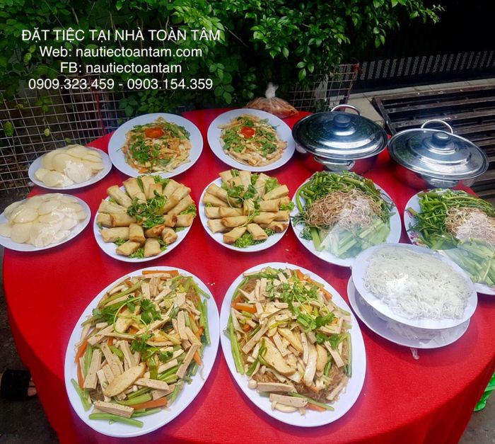 Nấu tiệc tại nhà Toàn Tâm chuyên cung cấp các dịch vụ tiệc tại nhà (tiệc gia đình), tiệc công ty, gồm tiệc tất niên, tiệc sinh nhật, tiệc thôi nôi, tiệc mừng thọ, tiệc kỷ niệm, tiệc tân gia, đám giỗ, tiệc cưới hỏi...với giá cả phải chăng và chất lượng dịch vụ xứng tầm. Công ty cam kết rằng quý vị lần đầu tiên đặt tiệc dù 1 món, 1 bàn hay hàng trăm bàn, chắc chắn quý vị không quên đặt tiệc tại nhà Toàn Tâm. Thực đơn tiệc phong phú bao gồm nhiều món chay và mặn như: gỏi bò rau thập cẩm cải mầm, ốc bươu dồn thịt, cật xào bông cải, cá chẽm sốt chua ngọt, tôm hấp nước dừa, vịt xối mỡ bánh bao, lẩu cá bớp nấu măng chua, bánh flan, chả giò chay...