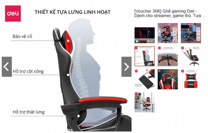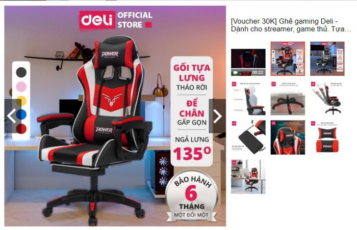 Link mua hàng: shopee.vn/-Voucher-30K-Ghế-gaming-Deli-Dành-cho-streamer-game-thủ.-Tựa-đầu-gác-chân-nâng-hạ-ngả-lưng-E4927-KM-01-i.412567642.19104596904