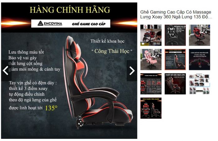 Ghế gaming cao cấp Encovina được trang bị massage lưng, xoay 360 độ, ngả lưng 135 độ và duỗi chân, hứa hẹn mang lại trải nghiệm thoải mái và thư giãn cho người dùng. Điểm độc đáo của sản phẩm là thiết kế đệm gối tựa lưng massage 2 trong 1, đáp ứng đa dạng nhu cầu sử dụng như chơi game, làm việc, nghỉ trưa, và thư giãn, đồng thời có lợi cho sức khỏe.