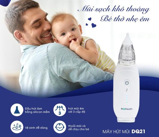 - Máy hút mũi Microlife Biohealth DQ21 vận hành êm dịu, làm sạch mũi hiệu quả ở mọi góc độ mà không làm đau bé.