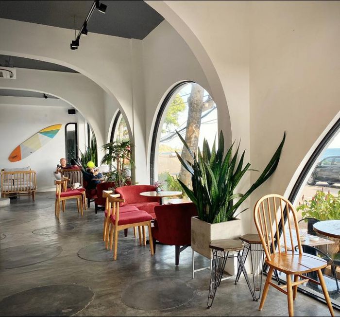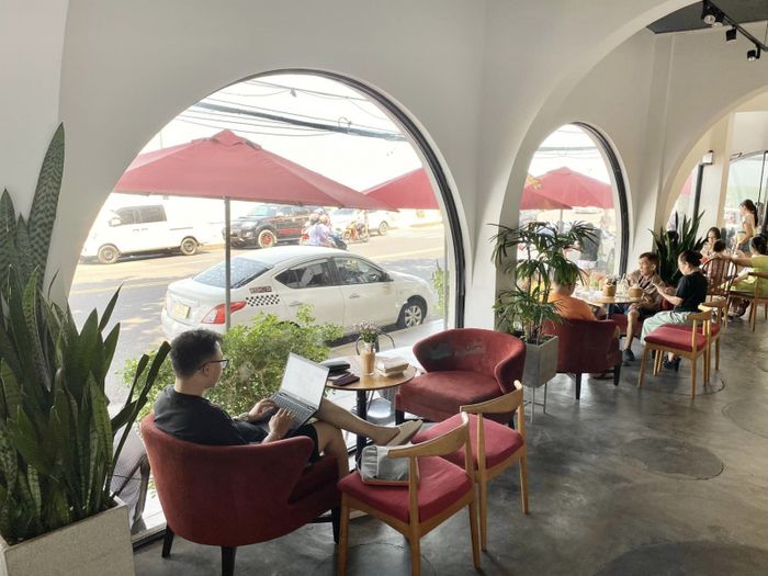 Cà Phê Biển có bố trí bàn ghế bên ngoài và bên trong, để khách hàng dễ dàng tìm được một góc riêng thư giãn cho mình. Không gian trên lầu được bố trí cửa kính rộng bao quanh để vừa có ánh sáng vừa giúp khách 'thu gọn' vẻ đẹp của biển và phố xá trong tầm mắt. Bật mí cho các tín đồ mê chụp ảnh: cửa sổ vòm là điểm nhấn của quán Cà Phê Biển, đây cũng là vị trí chụp ảnh được nhiều khách hàng lựa chọn vì góc ảnh rộng, có ánh sáng tự nhiên đấy. Cùng đến Cà Phê Biển và tự thưởng cho mình một ngày hè thư thả, một chút làm biếng để thưởng thức cà phê thơm và trà bánh yêu thích nè. À hãy tận hưởng kỳ nghỉ hè thật vui vẻ và thoải mái nhé.