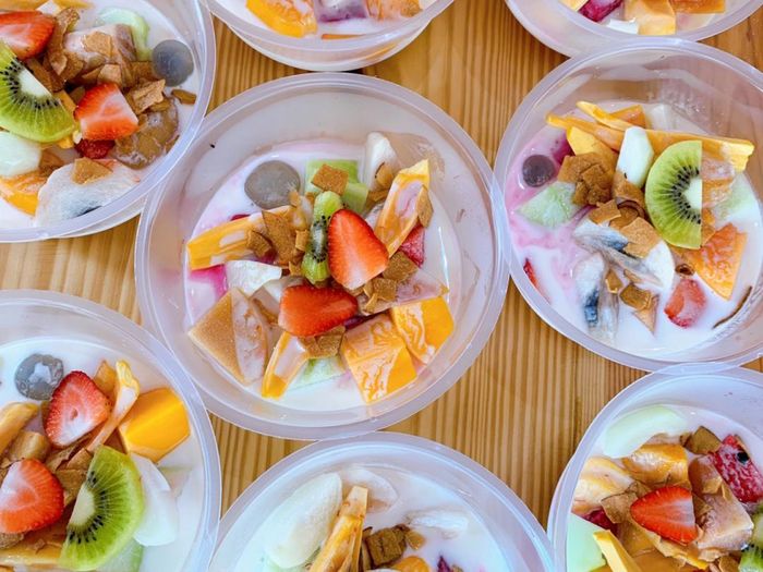 Các cốc hoa quả dầm tại Quán Coffee - Trà Sữa - Trái Cây Dầm Cheer luôn đảm bảo 100% tươi ngon, không chất bảo quản, đảm bảo vệ sinh. Đa dạng với màu sắc từ nhãn, cam, thanh long, xoài. Kết hợp với sữa đặc và nước cốt dừa, thơm béo, đá bào mát lạnh, hấp dẫn từ lần đầu nếm thử. Trái cây thường xuyên đổi mới theo mùa, mang lại trải nghiệm thú vị mỗi ngày.