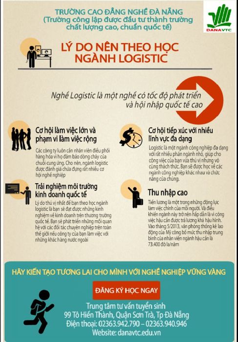 Trường Cao đẳng nghề Đà Nẵng là trường công lập chất lượng cao, chuyên đào tạo Logistics với liên kết doanh nghiệp. Sinh viên được đảm bảo việc làm khi tốt nghiệp. Trường tham gia dự án của Aus4skills (Australia) về đào tạo thí điểm theo chuẩn năng lực CBTA về nghề Logictics, giúp sinh viên tiếp cận phương pháp mới và thực tế doanh nghiệp.