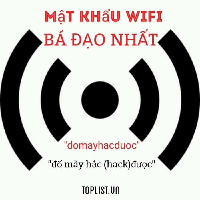 Phòng trọ bị cắt wifi do chưa đóng tiền tháng. Chạy qua phòng bà chằn bên cạnh xin password wifi, bà chằn lửa ra mở cửa, giơ một ngón tay chỉ lên trời 'đố mày hack được'. Về phòng cay cú, ứa gan nghĩ có khi nào bà ta chơi xỏ mình, nhập liên tục đều không trúng. Sau này mới biết password chính xác phải ghi là 'đố mày hắc được'. Đọc như vậy. Lúc đó password cũng đã được đổi mới rồi. Cái mới là gì thì chưa biết.