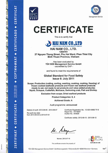 Công Ty TNHH Hải Nam, thành lập từ năm 1982, là một trong những công ty xuất khẩu thủy hải sản và thực phẩm đông lạnh hàng đầu tại Việt Nam, với quy mô nhỏ dạng kinh doanh gia đình. Chúng tôi sở hữu các nhà máy và kho lạnh hiện đại, đáp ứng tiêu chuẩn chất lượng quốc tế từ Nhật Bản, châu Âu và Hoa Kỳ: ➽ Nhà máy chế biến hải sản đông lạnh số 1: diện tích 2.800 m2, công suất 600MT/ngày ➽ Nhà máy chế biến hải sản khô số 2 tại Phan Thiết: diện tích 10.014 m2, công suất 2MT/ngày ➽ Nhà máy chế biến hải sản đông lạnh số 3: diện tích 3.400 m2 ➽ Các kho lạnh và kho vệ sinh: tổng công suất 5.000 ➽ Nhà máy chế biến hải sản khô tại Gò Vấp: diện tích 8.500 m2, công suất 100 tấn/tháng. Chúng tôi tự hào cung cấp các sản phẩm như: - Cá nục - Cá tráo - Cá đỏ củ - Nhuyễn thể - Cá lưỡi trâu - Thủy hải sản đông lạnh xuất khẩu - Tôm khô - Ruốc khô - Khô cá mai - Sò điệp khô - Bánh mì chả tôm - Nem cuộn hải sản - Bánh khoai môn hải sản - Rong nho - Rong nho muối - Rong nho xuất khẩu - Nấm mèo - Bún gạo khô - Bánh phở khô. Với nguyên liệu được lựa chọn kỹ lưỡng từ các nhà cung cấp truyền thống và hợp đồng với tàu cá, chúng tôi cam kết tuân thủ các quy định về khai thác bền vững và không khai thác bất hợp pháp (IUU) của châu Âu. Chứng nhận của chúng tôi bao gồm HACCP, BRC và HALAL, cho phép chúng tôi phục vụ khách hàng trong và ngoài nước, bao gồm cả thị trường quốc tế như EU, Nhật Bản và Mỹ.