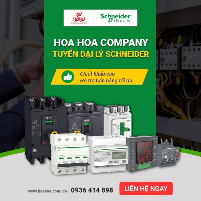- Chiết khấu cao: Hoa Hoa là đại lý phân phối chính thức sản phẩm thiết bị điện Schneider, Hitachi, DuHal, Himel khu vực miền Bắc và Hà Nội, cam kết chiết khấu cao nhất thị trường (30-55%).