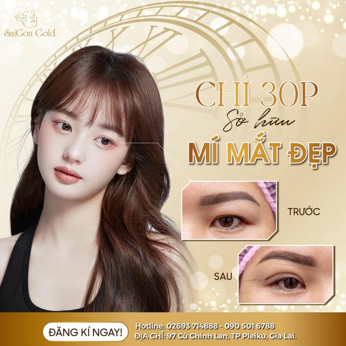 Cắt mí ở đâu đẹp vẫn là nỗi trăn trở của nhiều người muốn làm đẹp tại Gia Lai. Nếu bạn đang tìm kiếm địa chỉ uy tín, an toàn, hãy thử nghía ngó vào Thẩm Mỹ Viện Sài Gòn Gold, nơi nổi bật với dịch vụ cắt mí áp dụng công nghệ tiên tiến từ Hàn Quốc.
