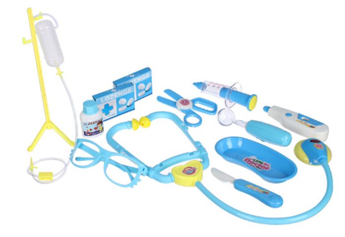Đồ chơi giá rẻ dụng cụ bác sĩ bao gồm nhiều dụng cụ như ống nghe, nhiệt kế, kéo, kim tiêm, bình truyền nước... Bé có thể đóng vai làm bác sĩ, giúp phát triển kỹ năng và hiểu biết về ngành nghề y tế.