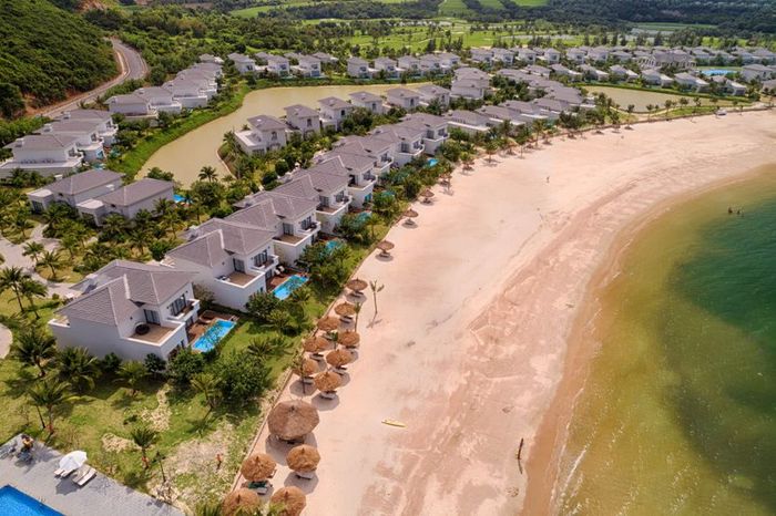 Vinpearl Sealink Nha Trang có 244 biệt thự riêng tư và 403 phòng nghỉ cao cấp, với bờ biển dài mịn màng và sân golf xanh mướt phía sau.