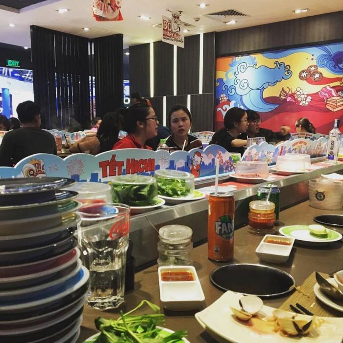 While Lan Rung may not be as famous as Kichi Kichi, choosing this restaurant for a conveyor belt dining experience will not disappoint you. With professional service and a luxurious, classy atmosphere, you’ll always feel comfortable dining at Lan Rung. Every dish is carefully prepared, from the ingredients to the cooking method, to meet the highest culinary standards. Lan Rung has long attracted diners with its rich, flavorful meals, but recently, it has added some new, unique dishes for a fresh dining experience. With a large variety of dishes and a diverse menu, you can enjoy a full meal without ever getting bored. Moreover, the prices are quite affordable for the number of dishes you can try at once, making it an exciting experience. The restaurant follows a closed cooking process, ensuring fresh ingredients, rich flavors, a variety of hotpot broths, and diverse dipping options… these features should convince you to visit Lan Rung. Come to Lan Rung for a fantastic conveyor belt dining experience.