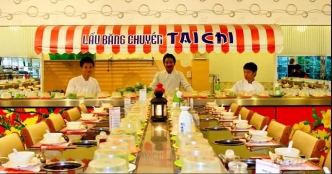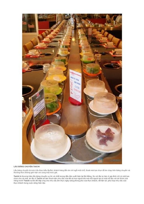 When talking about conveyor belt hotpot in Da Nang, it's impossible to forget Taichi Restaurant. Taichi is a perfect blend of tradition and modernity, offering a unique appeal in the world of Japanese-style buffet dining. Like many other buffet hotpot restaurants, Taichi serves a wide variety of dipping items and hotpot broths, but what sets it apart is the conveyor belt that delivers the dishes directly to you. Conveyor belt hotpot is a fresh, exciting way to enjoy a meal, and it's becoming increasingly popular. With the dishes on the conveyor belt, you can easily pick what you want and enjoy a variety of foods without having to move around. This adds a fun and convenient element to the dining experience. In addition to meats and seafood, Taichi offers 25 kinds of vitamin-rich vegetables to cater to your preferences. The menu changes by season and week, so each visit to Taichi brings something new. The restaurant's cozy, welcoming atmosphere makes you feel right at home, and with a capacity for over a hundred guests, it's an ideal venue for gatherings, meetings, and family reunions on weekends.