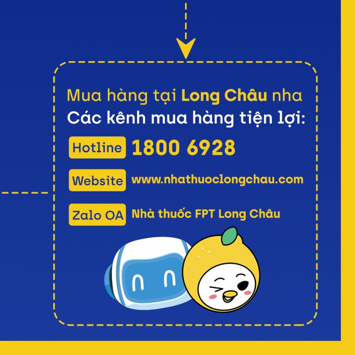 Với sự uy tín và chuyên môn của Nhà thuốc Long Châu - Thành viên tập đoàn FPT trong lĩnh vực kinh doanh dược phẩm tại Việt Nam, kết hợp với nền tảng công nghệ mạnh mẽ từ tập đoàn FPT, hệ thống nhà thuốc FPT Long Châu là một trong những chuỗi bán lẻ dược phẩm uy tín nhất Việt Nam với kinh nghiệm 20 năm. Đây là chuỗi nhà thuốc lớn nhất, phủ khắp 63 tỉnh thành trên toàn quốc.