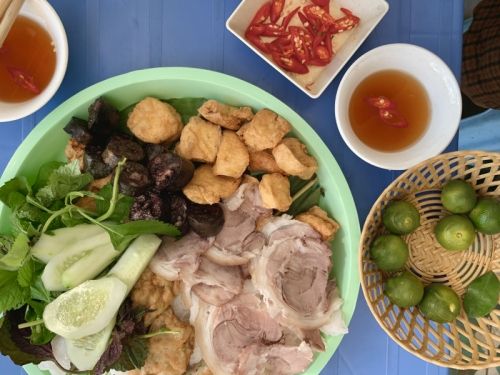 Một mẹt bún đậu ở Bún Đậu Lâm Nhi có đầy đủ các loại topping: bún mềm đanh, đậu nóng hổi ngoài giòn trong mềm, cốm dẻo thơm, dồi sụn, nem, thịt luộc. Bún sợi mảnh, được cắt miếng vừa miệng, rau thơm của quán cũng rất dậy mùi và đa dạng: rau kinh giới, tía tô, bạc hà, xà lách,… Chả cốm cũng cũng được đánh giá ngon, mềm dẻo còn nguyên hạt cốm, thịt thơm, chắc. Mắm tôm của quán cũng gây ấn tượng mạnh với khách bởi cách pha vừa mặn, không bị lợ cũng không mặn quá và độ dậy mùi đặc trưng mà chỉ quán mới có. Nếu bạn chưa biết phải ăn gì thì hãy đến Bún Đậu Lâm Nhi một lần để thưởng với một suất đầy đủ gồm bún đậu, chả cốm, thịt luộc ngay nhé.
