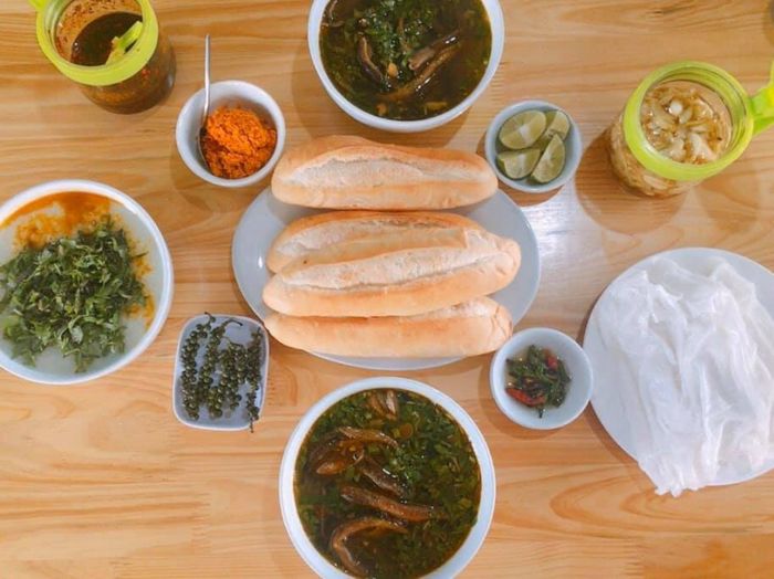 Một tô súp lươn cay nồng bao gồm rất nhiều thành phần hấp dẫn như rau thơm, hành tăm củ chưng chín, thịt lươn, nước dùng thơm ngon, và lớp váng đỏ của sa tế phủ lên trên cùng. Mỗi thành phần đều hấp dẫn với hơi nước bốc lên, tạo nên hương thơm quyến rũ. Cháo lươn và súp lươn thường được ăn kèm với bánh đa, bánh mướt hoặc bánh mì. Mỗi loại bánh đều được chuẩn bị tinh tế, tạo ra trải nghiệm ẩm thực tuyệt vời. Hãy ghé thăm quán Lươn Cay 214 để trải nghiệm sự hòa quyện của hương vị lươn đặc trưng.