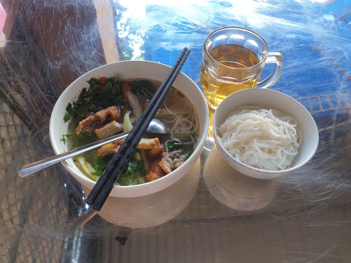 Không thể không nhắc đến hương vị đặc biệt của Quán Hải Thuỷ - địa chỉ phở ngon nhất tại Vinh. Nước lèo thơm ngon, ngọt thanh từ bò ninh chảy, phở mềm mịn từ bột gạo, và thịt bò tái thơm lừng. Không gian thoáng đãng, dễ chịu, với bãi đỗ xe rộng rãi. Một trải nghiệm ngon miệng mà bạn không thể bỏ qua. Ngoài phở, bạn cũng có thể thưởng thức bún bò Huế tại đây - một lựa chọn độc đáo và ngon miệng.