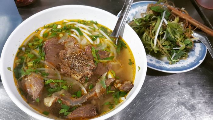 Theo đánh giá, bát bún bò ở đây hấp dẫn với nước dùng đậm đà, thanh thoát, viên chả cua to ngọt, thêm thịt bò nạm được ướp gia vị đầy đủ. Những loại gia vị như hành tím muối, tranh, quất, rau chuối, ớt muối đi kèm làm tăng thêm hương vị miền Trung đặc trưng. Nếu bạn đã thưởng thức món bún bò Huế tại đây một lần, chắc chắn bạn sẽ quay lại nhiều lần nữa.
