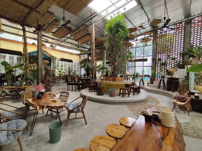 Quán có nhiều khu vực cho bạn lựa chọn, từ ghế trong nhà đến những góc bàn gần hồ nước tạo cảm giác thư giãn. Đồ uống tại đây, đặc biệt là cà phê, luôn nhận được đánh giá cao. Hãy dành một buổi chiều cuối tuần, ngồi bên ly cà phê phin, thư giãn với một cuốn sách, bạn sẽ trải nghiệm không gian tuyệt vời.