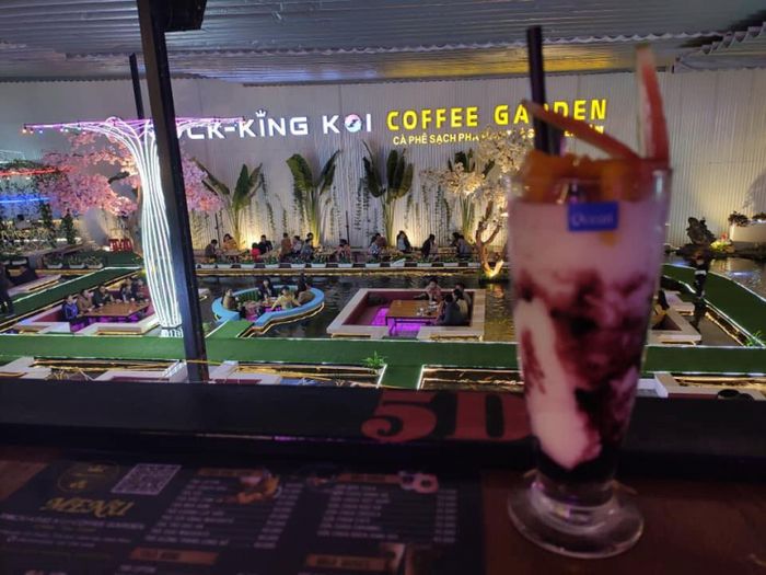 Koi Coffee Garden là địa điểm đặc biệt tại Vĩnh Phúc, nơi bạn nên khám phá. Quán thiết kế không gian xoay quanh bể cá Koi, mang đến trải nghiệm thú vị khi thưởng thức đồ uống với những chú cá bơi xung quanh. Không gian hiện đại, trang trí ấn tượng với đèn màu sáng tạo. Điểm độc đáo nhất chính là hòn non bộ được làm từ đá nguyên khối, khắc tên quán, tạo điểm nhấn độc đáo. Đây là địa điểm lý tưởng cho những ai muốn trải nghiệm không gian độc đáo và sôi động.