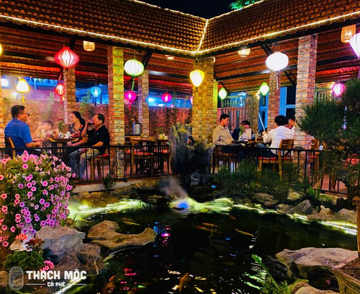 Với thiết kế kết hợp giữa nét cổ điển và hiện đại, Thạch Mộc Cafe chinh phục khách hàng bằng bức tường gạch, chiếc lồng đèn và những chiếc ghế gối họa tiết độc đáo. Bạn có thể ngắm nhìn cá bơi trong hồ, thư giãn giữa thiên nhiên. Đồ uống tại đây không chỉ ngon mắt mà còn làm hài lòng mọi thực khách.