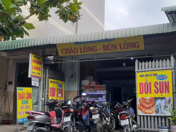 Quán Cô Thắm tọa lạc tại số 110 Tân Thới Hiệp 14, Quận 12, là địa điểm cháo lòng quen thuộc của người dân Quận 12. Nổi tiếng với hương vị thơm ngon, quán còn được đánh giá cao về vệ sinh thực phẩm. Đặc biệt, cháo ở đây nấu còn hạt gạo, tạo cảm giác ăn không ngán, hương vị đậm đà. Dàn topping phong phú với phèo, gan, giò heo, dồi chiên, huyết... đảm bảo làm bạn thỏa mãn vị giác.