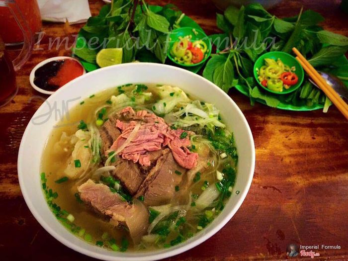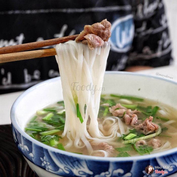 Hương vị của phở ở đây khác biệt so với những nơi khác, theo phong cách phở Bắc, có nhiều loại rau và gia vị để bạn thêm vào phở một cách tự do. Thịt nạm được chế biến rất khéo léo, thịt mềm tan trong miệng, có vị ngọt như sữa; thịt tái và chín vừa phải, thịt ngọt và thơm, còn bò viên thì đúng chuẩn cho một tô phở ngon.