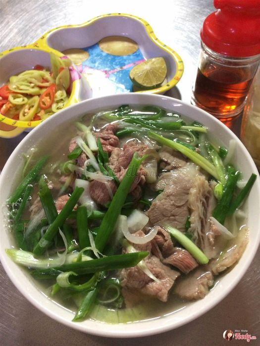 Giá của tô phở ở đây khá cao khoảng 65k. Phở có nhiều thịt, nước dùng ngon và đặc biệt là có rất nhiều hành. Nếu bạn thích ăn hành thì nên ghé qua quán này. Quán cũng cung cấp thêm bát hành riêng nếu bạn muốn.