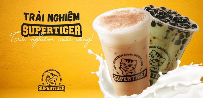 Super Tiger - Nổi tiếng với ly trà sữa 'đường nâu trân châu sữa tươi', Super Tiger là điểm đến của những ai yêu thích thưởng thức đồ uống ngon và độc đáo. Ly trà sữa tại đây không chỉ là đồ uống mà còn là tác phẩm nghệ thuật, với hình ảnh mô phỏng hổ vằn tinh tế trên lớp kem béo ngậy. Sự kết hợp độc đáo giữa sữa tươi thanh trùng Dalat Milk và đường nâu cô đặc tạo nên vị ngọt tự nhiên và thơm ngon đặc trưng.