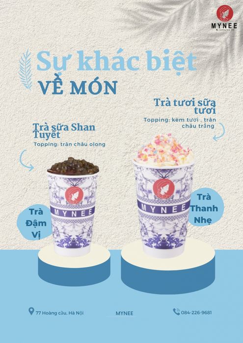 Mynee - Thiên đường trà sữa tại Hoàng Cầu, nơi quy tụ đủ mọi hương vị từ truyền thống đến độc đáo. Trà sữa tại Mynee không chỉ ngon miệng mà còn chứa đựng hương vị tự nhiên và thanh khiết. Bạn sẽ cảm nhận được sự hài lòng từ từng giọt trà sữa thơm ngon. Không gian quán rộng rãi với tông màu vàng ấm cúng, tạo nên không khí tràn ngập sự bình yên. Hãy ghé thăm Mynee để thưởng thức trà sữa và cảm nhận không khí ấm áp, bình yên ngay từ lần đầu tiên!