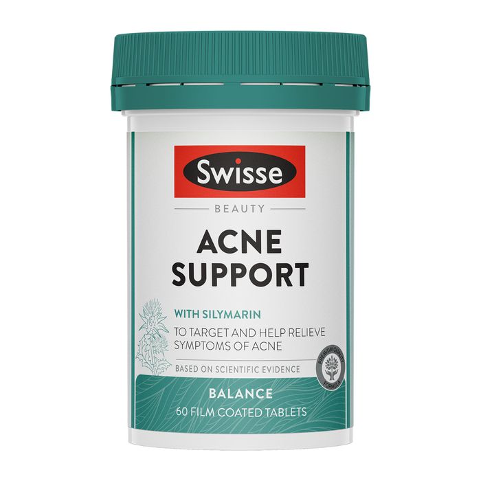 Viên uống ngừa mụn Swisse Beauty Acne Support là một chất bổ sung dinh dưỡng làm đẹp sáng tạo giúp nhắm mục tiêu và làm giảm các triệu chứng của mụn trứng cá từ bên trong. Sản phẩm với công thức chất lượng cao có chứa silymarin, giúp giảm các triệu chứng của mụn trứng cá và giảm viêm, đồng thời kẽm và vitamin C hỗ trợ làn da khỏe mạnh và chữa lành vết thương. Swisse Beauty Acne Support cũng bao gồm vitamin E và selen để cung cấp hỗ trợ chống oxy hóa, giúp giảm tổn thương gốc tự do cho các tế bào cơ thể.