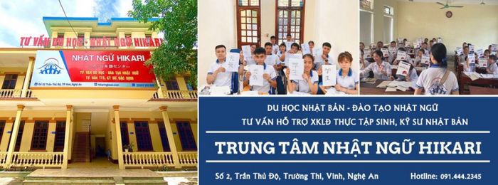 Trung tâm Nhật ngữ Hikari chuyên xuất khẩu lao động, kỹ sư, tư vấn du học Nhật Bản - Hàn Quốc - Đức. Và đào tạo ngoại ngữ chuyên môn ngay tại thành phố Vinh, Nghệ An. Tại đây tạo điều kiện tốt nhất có thể cho các bạn trẻ học tập và làm việc tại Nhật Bản - Hàn Quốc - Đức. Trung tâm tư vấn du học – Đào tạo Nhật ngữ Hikari làm việc trực tiếp với các đối tác tại Nhật Bản không qua bất kỳ đơn vị trung gian. Trụ sở chính tại Tp.Vinh, Nghệ An.