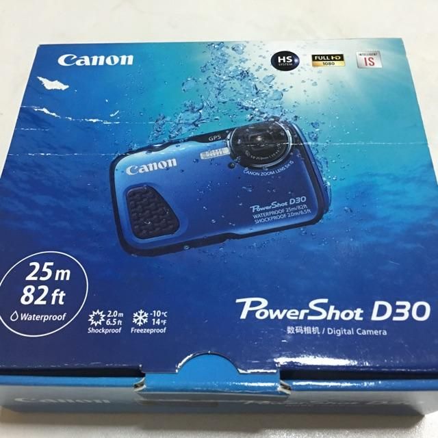 The Canon PowerShot D30 is the world’s most waterproof camera, able to withstand depths of up to 25 meters without a housing. Featuring a 12.1 MP CMOS sensor, a 1/2.3-inch size, and a DIGIC 4 image processor, this camera captures high-resolution still images and 1080p HD video through its dedicated movie button. Together, these components form the Canon HS System, delivering excellent low-light performance. The D30 is equipped with a 5x optical zoom lens, offering a focal range equivalent to 28-140mm in 35mm format, from wide-angle to telephoto views.