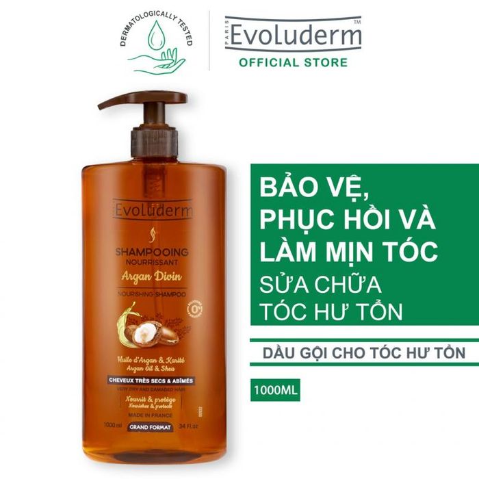 - Dầu gội dành cho tóc rất khô và hư tổn Evoluderm Shampoing Nourrissant Argan Divin