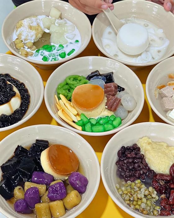 Each bowl of sweet soup is perfectly sized, not too much to make you feel overwhelmed. Particularly, each sweet soup offers a unique flavor, carefully crafted from familiar local ingredients. Some of the most popular and tempting choices include mixed sweet soup, sticky rice balls in sweet soup, mung bean sweet soup, taro cake, and grapefruit sweet soup. The toppings are thoughtfully prepared using high-quality ingredients, ensuring a delightful culinary experience. The sweet soups are served in small bowls, and guests can add ice as they prefer. The shop’s space is simple but extremely spacious and clean. If you have a chance, don't miss the experience at Four Seasons Sweet Soup Shop!