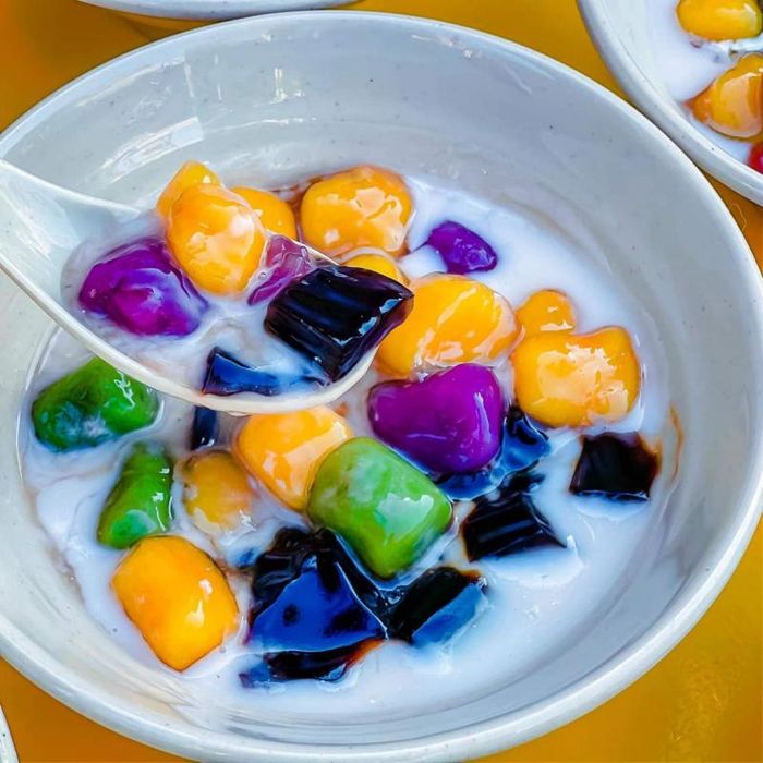 A bowl of Adak seed sweet soup at Delicious Baby Chun Sweet Soup is filled with sương sáo (grass jelly), palm sugar coconut milk, and plenty of tasty toppings. The Adak seeds are delicious and chewy, and the coconut milk is rich and creamy, making it the perfect refreshing treat. In addition to Adak seed soup, they also offer tofu desserts, bubble tea, and yogurt, giving you plenty of options to choose from. Gathering with friends to chat and enjoy a delicious bowl of sweet soup at Delicious Baby Chun is truly a delightful experience. The combination of flavors and textures creates an irresistible and satisfying treat. On weekends, there’s nothing better than strolling around the city with family and friends, and enjoying a quality bowl of sweet soup at Delicious Baby Chun.
