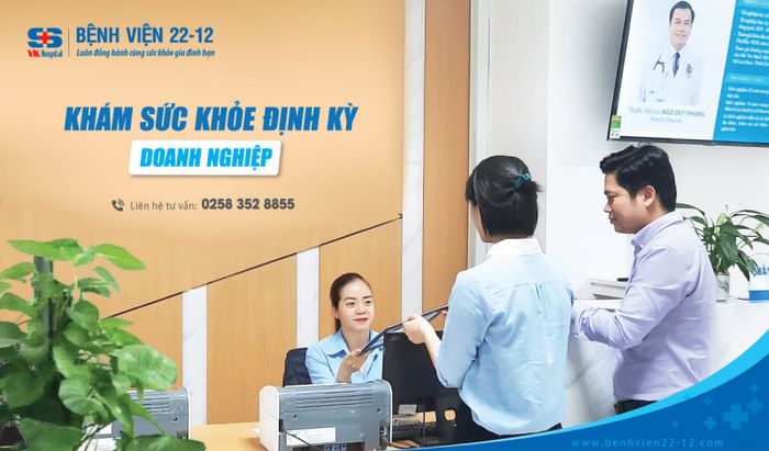 Bệnh viện 22-12 tọa lạc ngay trung tâm thành phố Nha Trang, đem đến dịch vụ khám, điều trị, nghỉ dưỡng cao cấp với đội ngũ y bác sĩ kinh nghiệm, trang thiết bị hiện đại. Áp dụng tiêu chuẩn JCI của Mỹ, chăm sóc tận tâm với phương châm an toàn y tế hàng đầu. Cơ sở vật chất sang trọng, hiện đại đạt tiêu chuẩn 5 sao, quy trình khám nhanh chóng, chính xác. Gói khám sức khỏe doanh nghiệp đa dạng, linh hoạt, chi phí hợp lý. Bệnh viện 22-12 đồng hành cùng doanh nghiệp trong việc chăm sóc sức khỏe cán bộ, nhân viên với lịch khám linh hoạt, báo cáo kết quả chi tiết miễn phí.