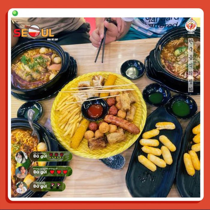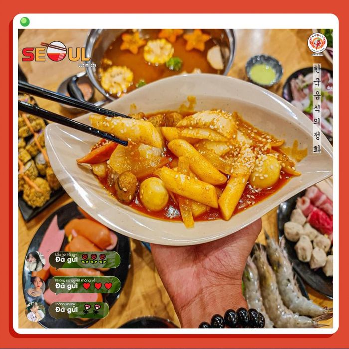 Ngoài mì cay, Mỳ Cay Seoul còn phục vụ nhiều món ngon như KimBap, lẩu kim chi sườn sụn, hải sản, lẩu bò... Hãy ghé thăm để thưởng thức hương vị đặc trưng và đa dạng tại Mỳ Cay Seoul.