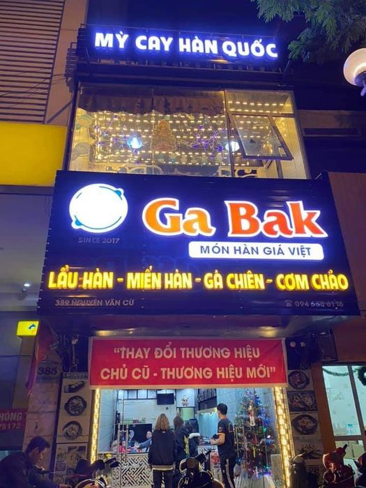 GaBak - Món ăn Hàn Quốc là thương hiệu mới, tiếp nối thành công của Sasin 389 Nguyễn Văn Cừ. Quán không chỉ nổi tiếng với không gian thoáng đãng, sạch sẽ mà còn ghi điểm với đội ngũ nhân viên dễ thương và nhiệt tình. Với menu đa dạng từ miến cay, cơm trộn Hàn Quốc đến lẩu kim chi, gà lắc phô mai, GaBak hứa hẹn mang đến trải nghiệm ẩm thực Hàn Quốc đặc sắc.