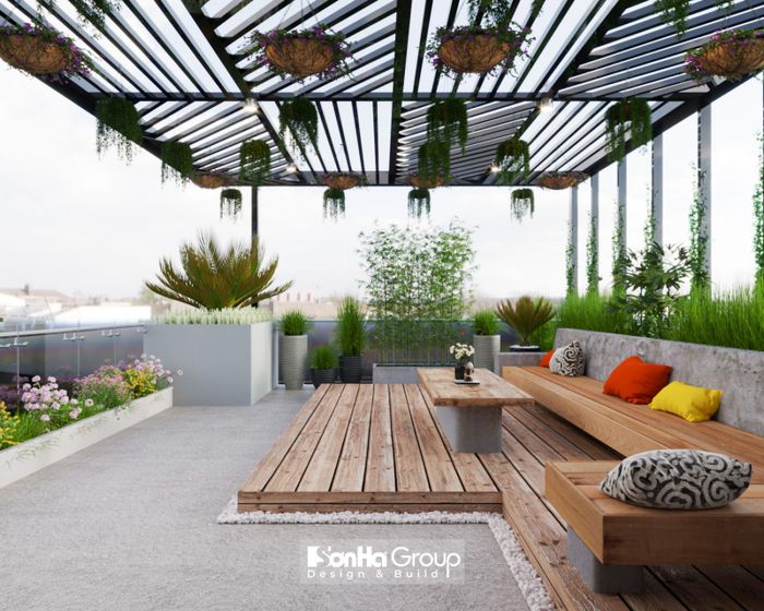 - Thiết kế và thi công hạng mục: trần thạch cao, sàn gỗ, lan can kính, sơn bả...