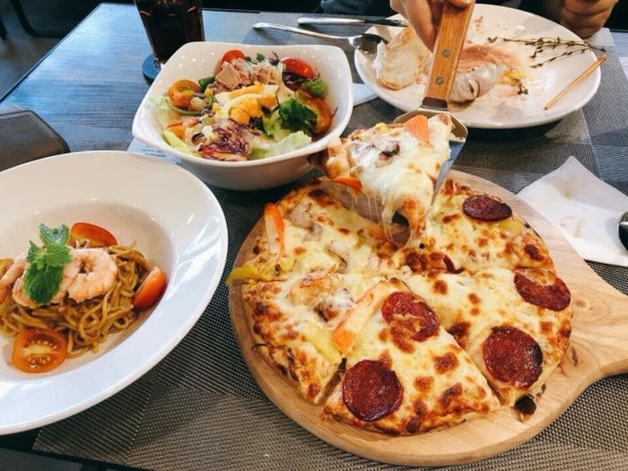 Kim Pizza & Pasta luôn mang đến những món ăn ngon đặc biệt với phong cách rất riêng. Pizza ở đây được đánh giá cao, đế bánh vừa phải, không quá dày hay mỏng, phô mai quyện đều trong từng miếng bánh. Kim Pizza & Pasta kết hợp hài hòa hương vị truyền thống Việt Nam vào các món ăn châu Âu, đảm bảo mang lại trải nghiệm độc đáo. Hãy đến Kim Pizza & Pasta để thưởng thức Pizza, mì Ý, bò bít tết, gà sốt cay phủ phô mai và nhiều món ăn vặt khác theo công thức chuẩn của quán.